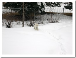Before we get to a finish, here is what we woke up to on Sunday morning. It snowed all day Saturday leaving us with 21cm of heavy, wet, record breaking snow. It truly was beautiful, but I would rather it in December not APRIL. Lily was out enjoying the snow this morning.!!